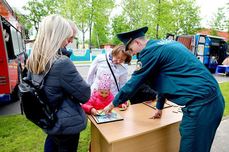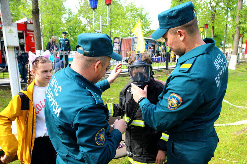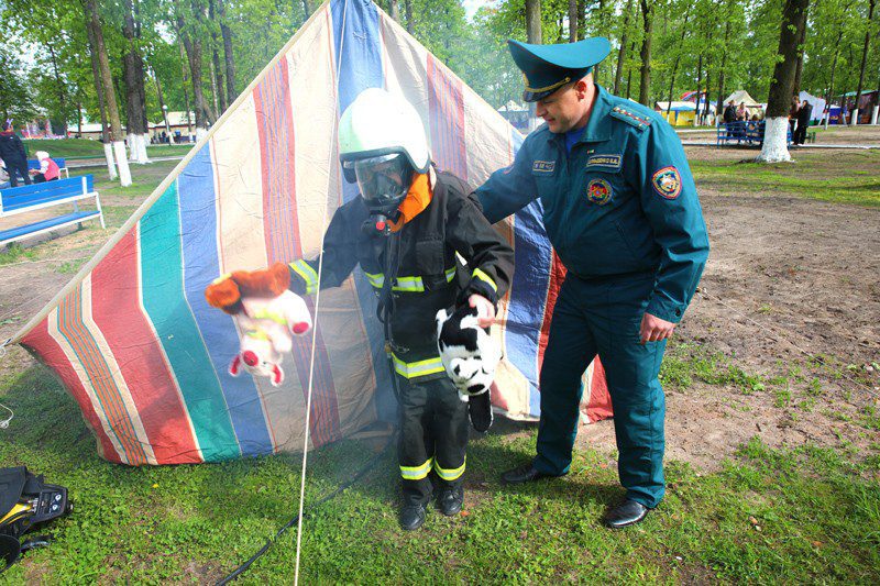 Сотрудники Климовичского РОЧС организовали работу нескольких игровых площадок. Среди них «Поиск пострадавшего», «Тушение пожара». Предложили всем желающим примерить на себя боевку, войти в изолирующем противогазе в задымленную палатку и отыскать там спрятанный предмет, сбить водой мишень с помощью пожарного ствола и др.
