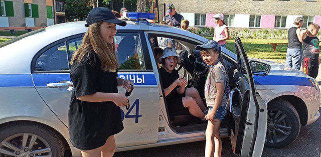Детский оздоровительный лагерь «Орленок» посетили заместитель начальника Климовичского РОВД Александр Ковалев, начальник инспекции по делам несовершеннолетних Денис Герасимов, инспектор ОГАИ Дмитрий Жариков и сотрудники Департамента охраны.