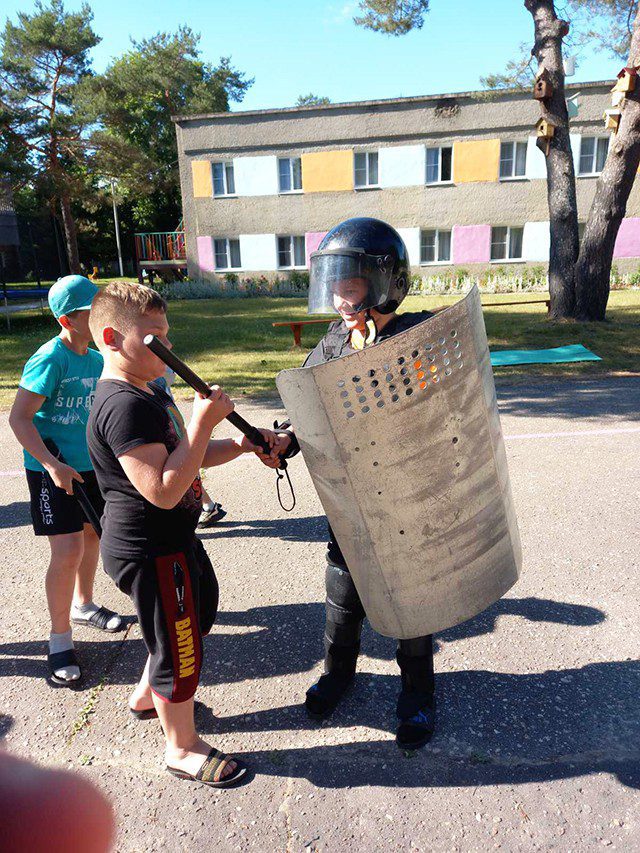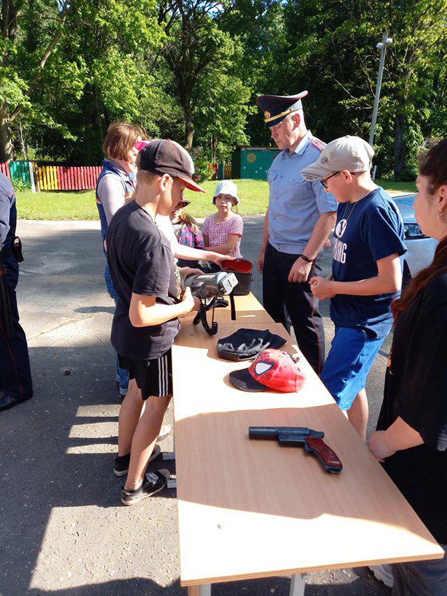 Милиционеры продемонстрировали ребятам выставку спецсредств и вооружения. Дети могли не только увидеть служебный транспорт, но почувствовать себя водителем спецавтотранспорта, посидев в салоне за рулем. Отдыхающие с удовольствием рассматривали и фотографировались с автоматом, пистолетом, примеряли на себя элементы экипировки.