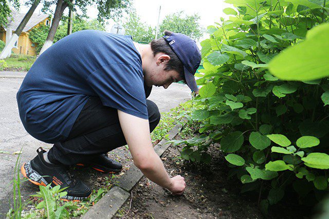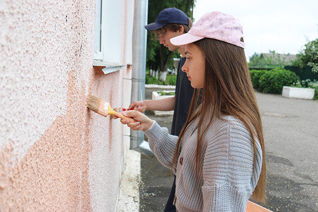 Еще одна бригада занята озеленением и работой в парниках, покраской цоколя.