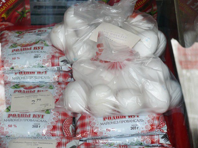 Территория магазина № 29 на ул. Новой на момент мониторинга требовала уборки. Здесь не своевременно был убран бытовой мусор. Также продавцом не соблюдались правила товарного соседства. Было допущено совместное хранение сырой и готовой продукции — яйца и майонез.