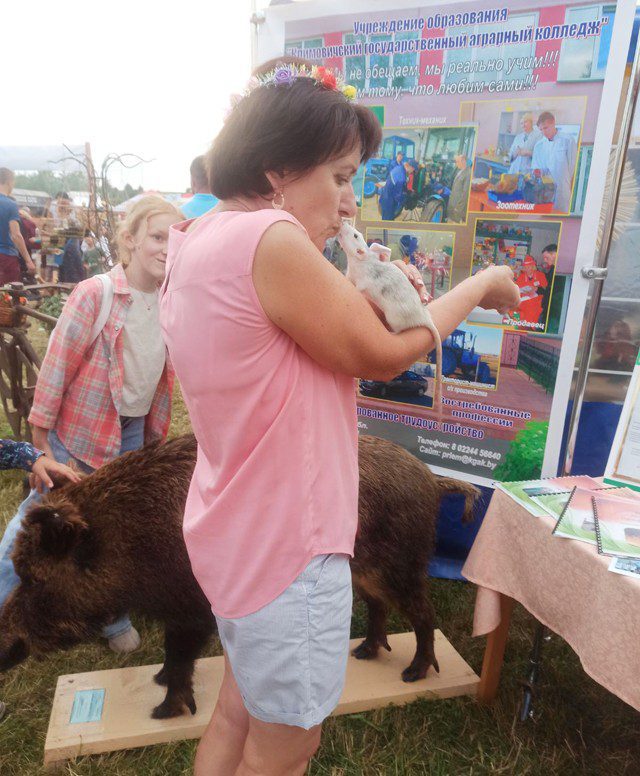 Не оставил никого равнодушным мастер-класс по кинологии учащейся 3 курса Даны Беккер. Немецкая овчарка Венди четко выполняла все команды хозяйки и стала настоящей любимицей гостей площадки. Могли увидеть посетители морскую свинку и ручную крысу, а также получить советы по уходу за различными животными от учащейся 3 курса Виктории Шестаковой.