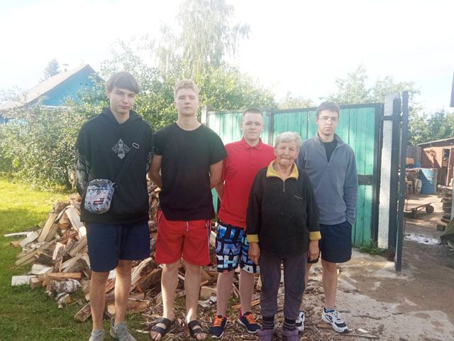В рамках традиционного волонтерского движения общественной организации «Белорусский республиканский союз молодежи» «Доброе сердце» и акции «Мы выбираем помощь пожилым людям», направленных на помощь пожилым и одиноким людям, инвалидам, активисты волонтерского отряда первичной организации ОО «БРСМ» Климовичской районной государственной гимназии имени И.С. Николаева помогли пенсионерке Вере Ивановне Ткачевой в уборке дров.
