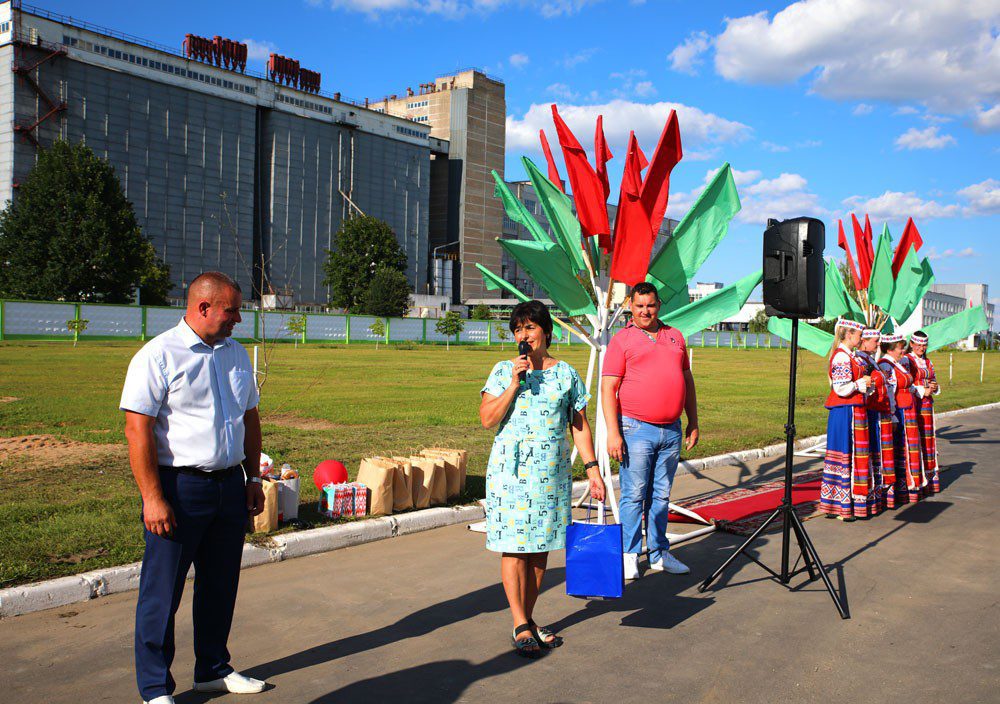 Первую машину с зерном на территории предприятия поприветствовали труженики комбината хлебопродуктов. С напутственными словами к аграриям обратилась председатель профкома КХП Людмила Прудникова. Перед тружениками села стоит важнейшая задача — без потерь убрать выращенный урожай в самые короткие сроки.