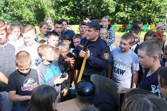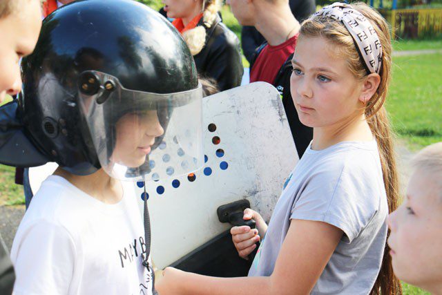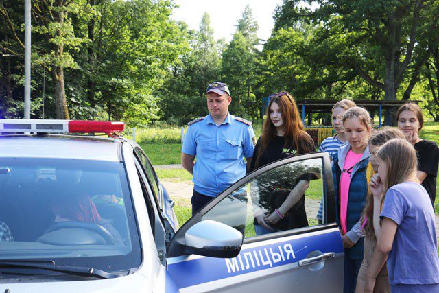 Сотрудники милиции провели с ребятами беседу на правовую тематику, показали выставку спецсредств и вооружения. Дети могли не только увидеть служебный транспорт, но почувствовать себя водителем спецавтотранспорта, посидев в салоне за рулем. Отдыхающие с удовольствием рассматривали и фотографировались с автоматом, пистолетом, примеряли на себя элементы экипировки.