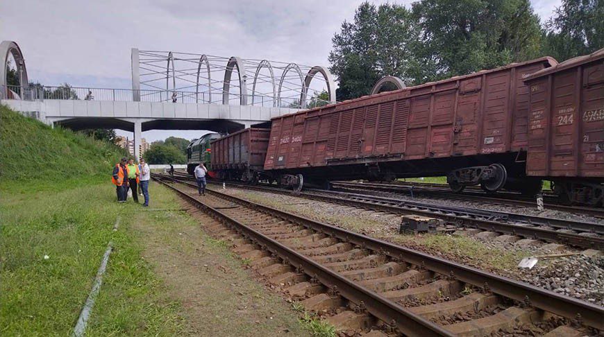 На станции Могилев-2 несколько вагонов грузового поезда сошли с рельсов