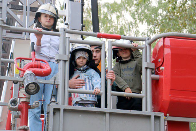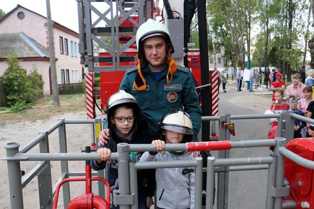 В очередной раз порадовали спасатели. К услугам взрослых и детей была бесплатная «корзина обзора». Конечно, подняться в ней и обозреть город с высоты верхушки деревьев можно было только в сопровождении сотрудника РОЧС и надев соответствующую экипировку. И это обстоятельство (экипировка) являлась дополнительной изюминкой аттракциона. Особенно в восторге были дети. А родители, конечно же, снимали весь процесс на телефоны.