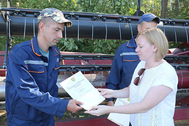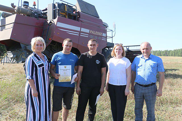 По уже сложившейся традиции вручать подарки и награды передовикам в поле отправились председатель райкома профсоюза работников агропромышленного комплекса Александр Голочевский, главный специалист отдела идеологической работы, культуры и по делам молодежи райисполкома Ольга Сухарева, первый секретарь райкома ОО «БРСМ» Алеся Котова.