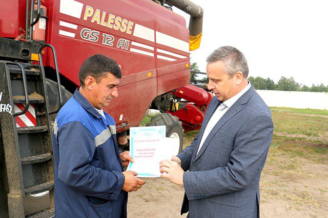 Лидирующие позиции среди комбайнеров занимает также комбайнер КСУП «Михалинский» Александр Кирпиченко. Он тоже принимал поздравления с успехом.
