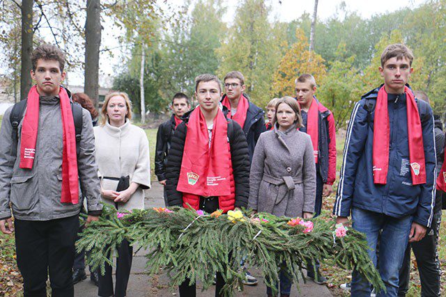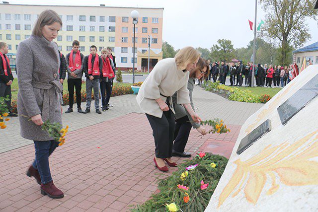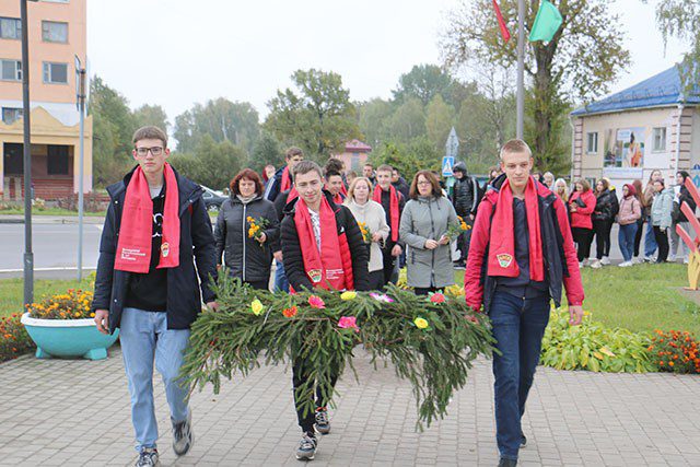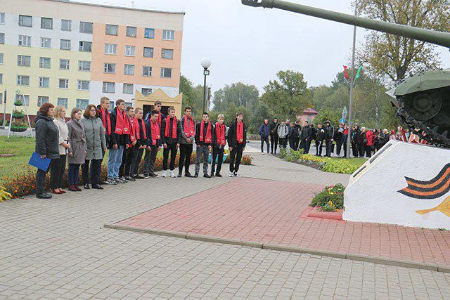 Учащиеся УО «Климовичский государственный аграрный колледж» вместе с первым секретарем райкома ОО «БРСМ» Алесей Котовой и председателем Молодежного парламента при Климовичском районном Совете депутатов Ириной Шашковой возложили цветы на братскую могилу на территории колледжа и к монументу «Танк ИС-3».