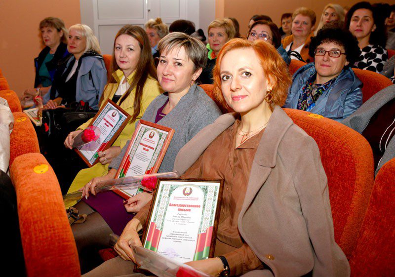 Почетными грамотами отдела по образованию были награждены директор центра дополнительного образования детей и молодежи Елена Андрюшкова, учитель иностранного языка районной гимназии Юлия Атабекян, заместитель директора по учебной работе Роднянской средней школы Мария Бурдилова, воспитатель дошкольного образования детского сада № 4 «Ромашка» Елена Гудкова, учитель белорусского языка и литературы Роднянской средней школы Татьяна Корнеенко, учитель-дефектолог дошкольного образования детского сада № 2 «Солнышко» Лилия Мазурова, учитель иностранного языка Тимоновской средней школы Татьяна Мокшанина, воспитатель дошкольного образования Барсуковской базовой школы Ирина Некрасова, учитель начальных классов Милославичской средней школы Елена Пронькина, учитель иностранного языка средней школы № 1 Анна Решетнева, педагог социальный СПЦ Елена Романенко, учитель иностранного языка Роднянской средней школы Алина Рябцева, учитель физики средней школы № 4 Людмила Старовойтова, учитель белорусского языка и литературы Полошковской средней школы Светлана Стелькина, учитель информатики средней школы № 3 Жанна Федорович, учитель-дефектолог РЦКРОиР Наталья Цыганкова, учитель белорусского языка и литературы средней школы № 3 Елена Шикина.