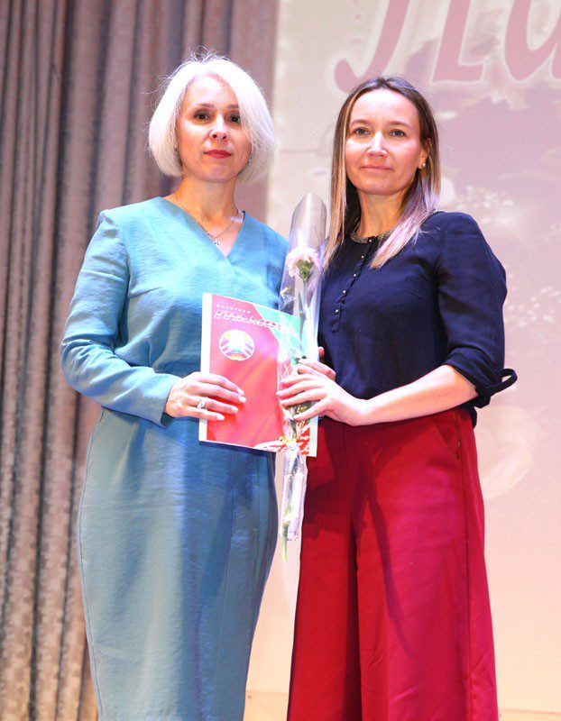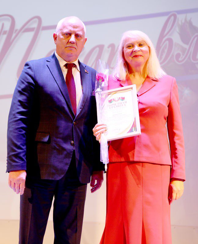 На сцену для поздравления и награждения пригласили начальника отдела по образованию райисполкома Ирину Осмоловскую.