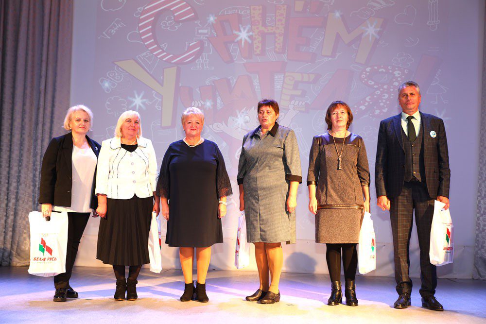Здоровья, благополучия, оптимизма и новых творческих побед педагогам Климовщины пожелала заместитель председателя районной организации РОО «Белая Русь» Алла Антипова. Ценными подарками наградили учителя начальных классов Тимоновской средней школы Инну Анелькину, преподавателя аграрного колледжа Ларису Ермаченко, заместителя директора по хозяйственной работе районной гимназии Нину Попкову, учителя белорусского языка и литературы средней школы № 4 Ирину Степенкову, директора средней школы № 3 Владимира Шупранова.