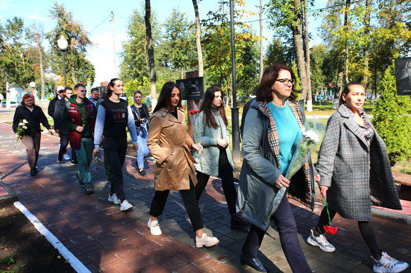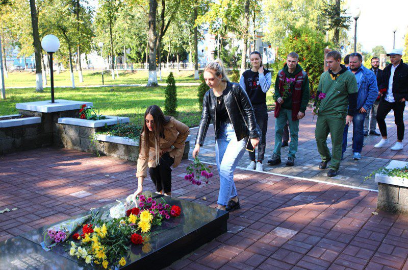 Вначале климовчане возложили цветы на братскую могилу в городском парке, а затем на автомобилях отправились по маршруту г. Климовичи — д. Коноховка — аг. Милославичи — д. Великий Мох — г. Климовичи.