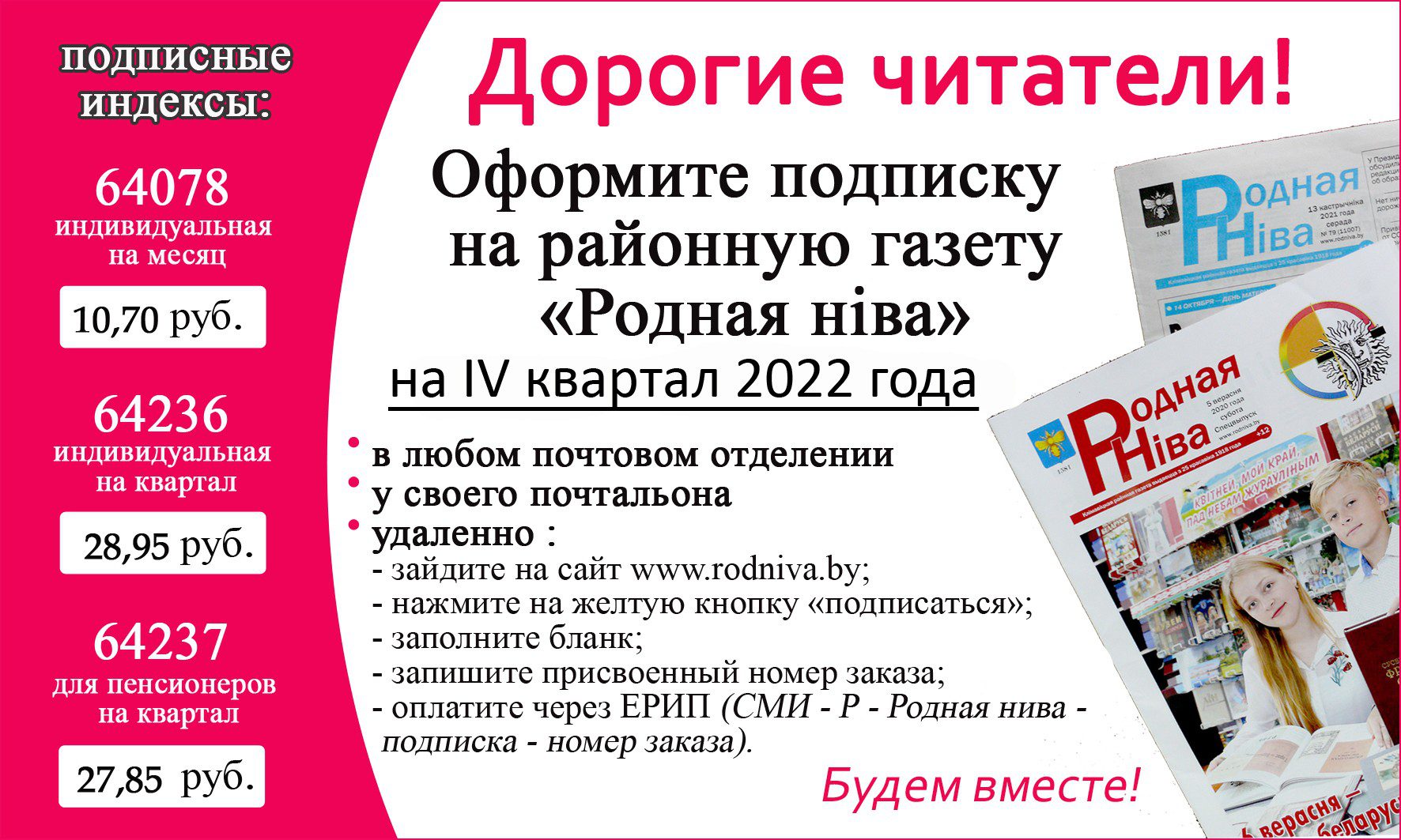 Актуально Продолжается подписка на Климовичскую районную газету «Родная ніва» на IV квартал 2022 года От Родная Нiва - 06.09.2022