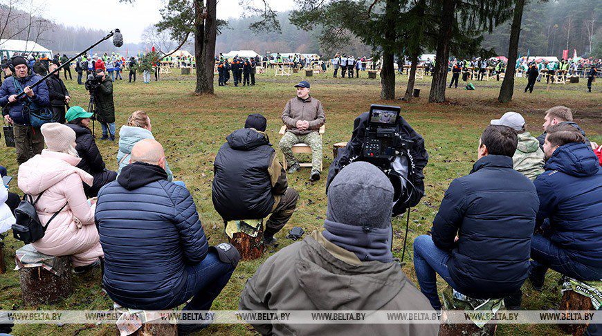 Лукашенко приехал на чемпионат по колке дров среди журналистов
