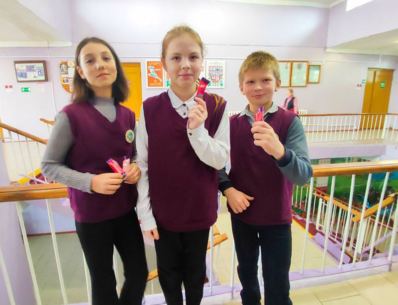 Учащиеся откликнулись охотно и активно несли в школу пластиковые бутылки, получая за каждую конфету из рук заместителя директора по основной деятельности Екатерины Гончаренок.