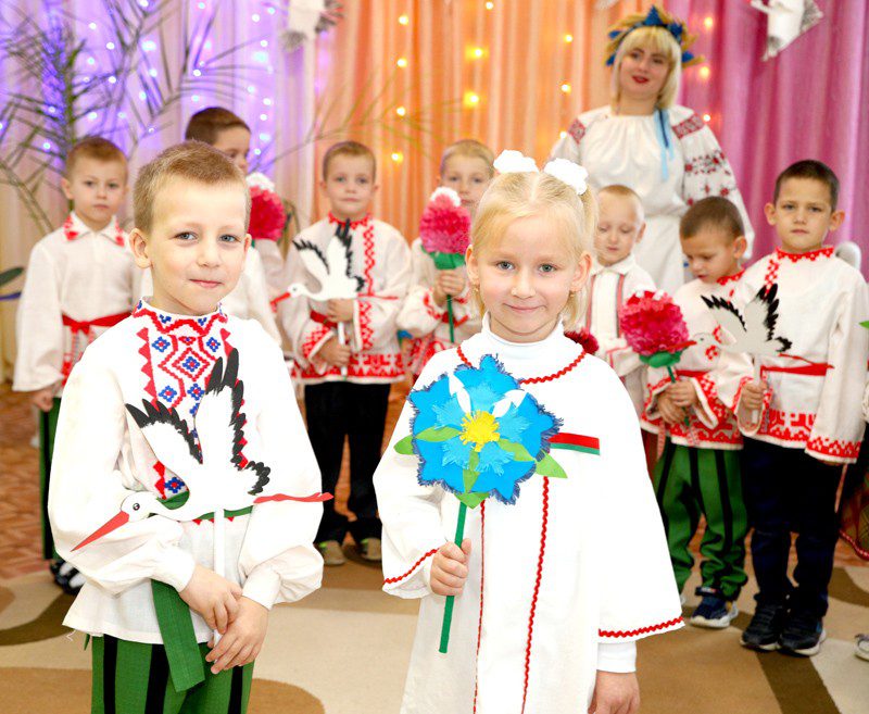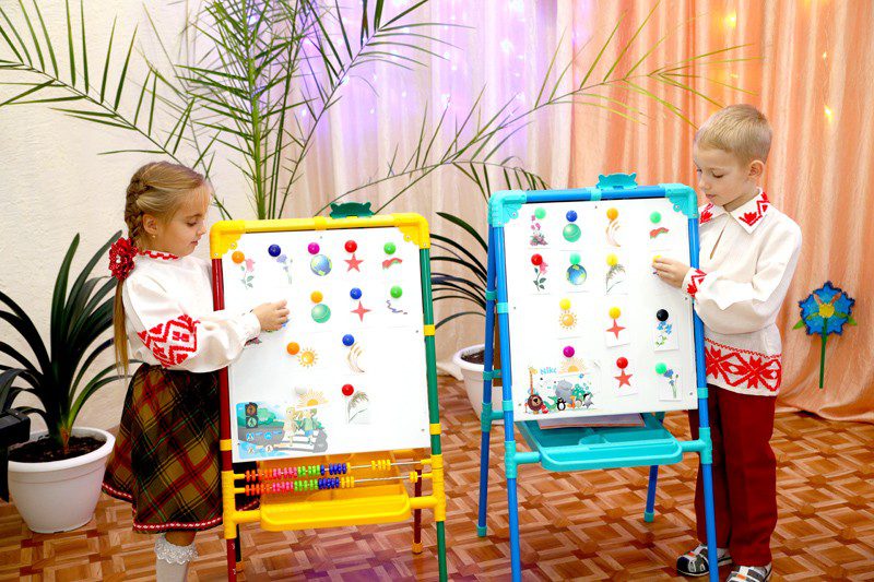 В игровой форме во время таких мероприятий детей знакомят с природными символами нашей страны — зубром, аистом, васильком, льном, развивают интерес и уважение к белорусскому орнаменту, гербу, флагу, гимну. А помогают в этом педагогам мультимедийные презентации, изготовленные своими руками поделки.