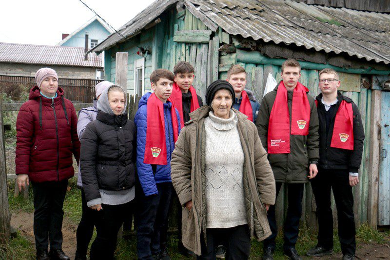 Волонтерский отряд первичной организации ОО «БРСМ» средней школы № 1 вместе с первым секретарем райкома ОО «БРСМ» Алесей Котовой, заведующей отделением социальной помощи на дому РЦСОН Ириной Стефаненко и социальными работниками в рамках акции «Мы выбираем помощь пожилым людям» наводили порядок на приусадебном участке хозяйки дома.
