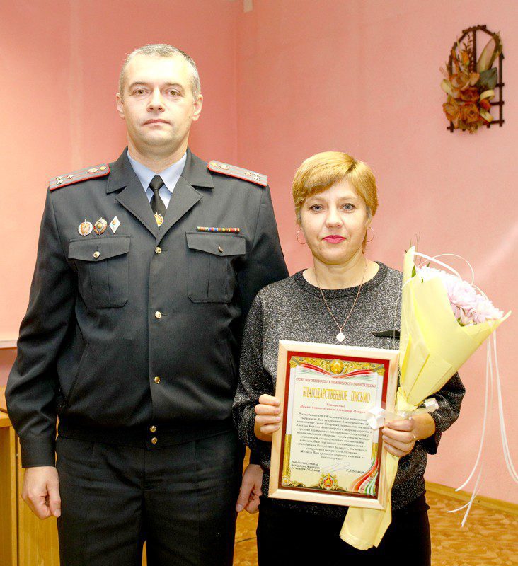 По традиции 17 ноября отмечается день образования службы участковых инспекторов милиции. Начальник отдела внутренних дел райисполкома Руслан Беляков вручил благодарственное письмо Ирине Киселевой — матери участкового инспектора милиции Кирилла Киселева.