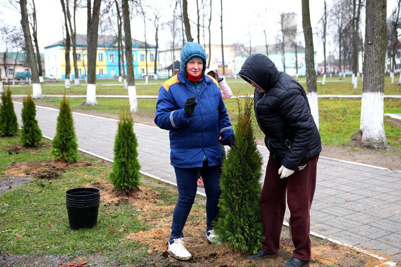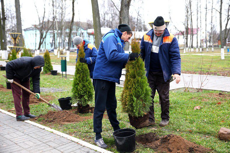 АктуальноОбщество Труженики УКП «Коммунальник» высадили десятки туй в общественных местах г. Климовичи От Родная Нiва - 16.11.2022 На днях красивые зеленые насаждения появились на центральной аллее в городском парке, на улицах Ленина и 50 лет СССР. Коммунальщики высадили десятки туй, чтобы они украшали общественные места, помогали создавать горожанам хорошее настроение.