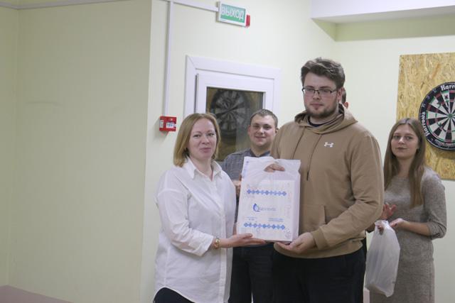 Первый секретарь райкома ОО «БРСМ» Алеся Котова вручила команде-победителю сладкий подарок, а лучшим игрокам — сувениры.