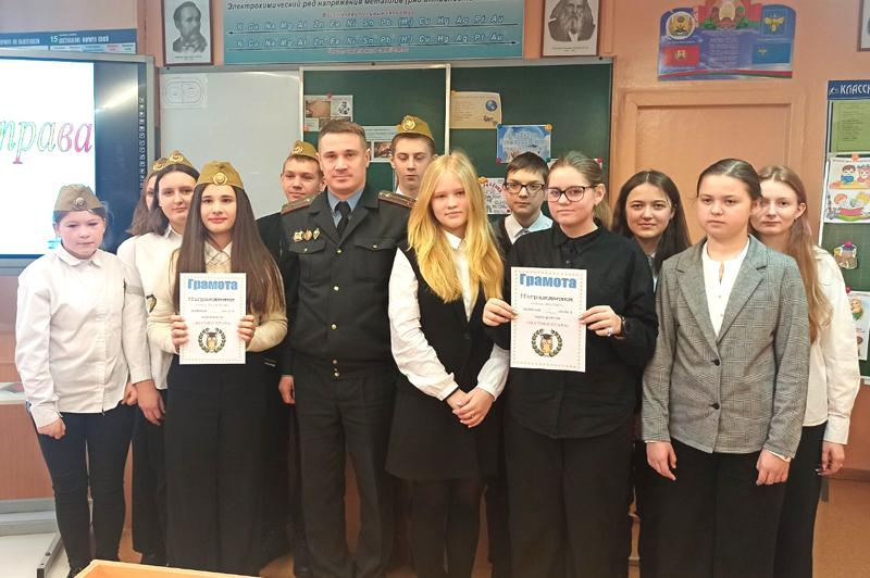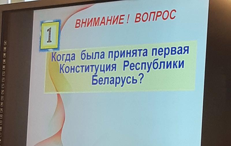 На урок в правовом классе первой городской школы ребята пригласили помощника начальника Климовичского отдела Департамента охраны Министерства внутренних дел по идеологической работе и кадровому обеспечению Евгения Фоменкова. Состоялась беседа, в которой участники мероприятия говорили о правах человека. Школьники разделились на две команды — «Правоведы» и «Знатоки». Учитель истории Татьяна Родькина подготовила для ребят интерактивную викторину. Мальчики и девочки отвечали на вопросы: «Когда была принята первая Конституция Республики Беларусь?», «Какая форма государственного устройства нашей республики?». Школьники правильно назвали символы Беларуси, успешно решили многие юридические задачки.