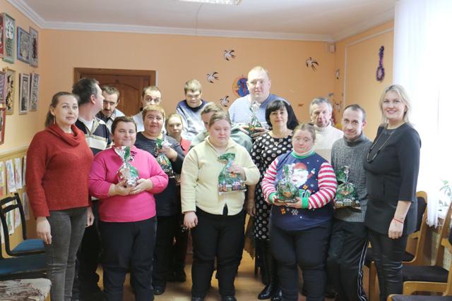 Красивые новогодние подарки для посещающих дневное отделение подготовили работники комбината хлебопродуктов. Председатель профсоюзного комитета Людмила Прудникова и заместитель директора по идеологической работе, кадрам и быту Татьяна Иванова поздравили собравшихся с праздниками и подарили им не только сладости, но и положительные эмоции.