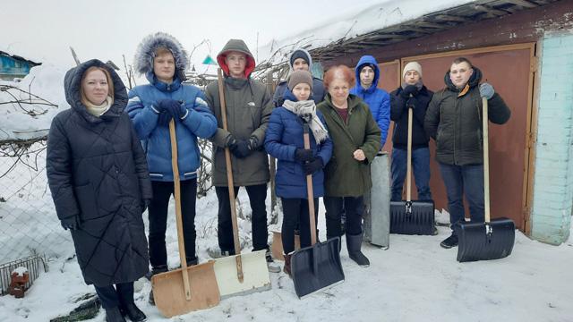 В рамках традиционного волонтерского движения общественной организации «Белорусский республиканский союз молодежи» «Доброе сердце» и акции «Мы выбираем помощь пожилым людям», направленных на поддержку пожилых и одиноких людей, инвалидов, активисты волонтерского отряда первичной организации ОО «БРСМ» средней школы № 1 вместе с членами Молодежного парламента, созданного при Климовичском районном Совете депутатов, посетили Елену Григорьевну Мышковскую и помогли пенсионерке очистить придомовую территорию от снега.