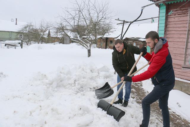 В рамках акции «Мы выбираем помощь пожилым людям» активисты первичной организации ОО «БРСМ» ОАО «Климовичский КХП» Сергей Кирпиченко и Дмитрий Гололобов посетили Раису Тимофеевну Будинскую и Надежду Афанасьевну Лифенцову. Молодые люди расчистили дорожки от снежного покрова.