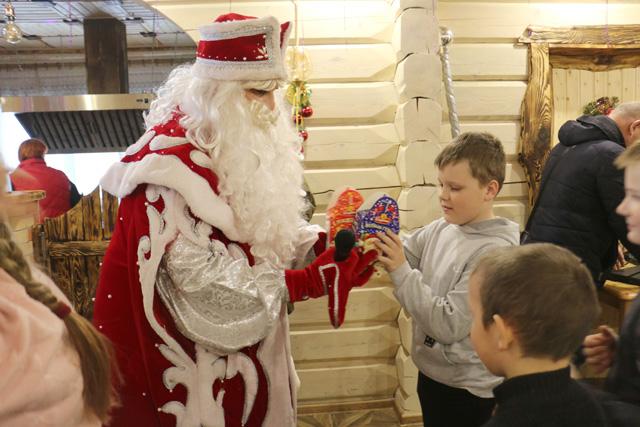 В агроусадьбе «Селище» для детей был устроен праздник. Ребята читали стихи Деду Морозу, водили вместе со Снегурочкой хороводы, играли в веселые игры. А затем всех пригласили за сладкий стол.