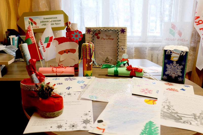 В приемной Климовичской районной организации РОО «Белая Русь» подвели итоги первого этапа конкурса «Письмо Деду Морозу». Как рассказала руководитель общественной организации Наталья Асмоловская, оценивались работы юных климовчан, чьи родители являются членами РОО «Белая Русь».