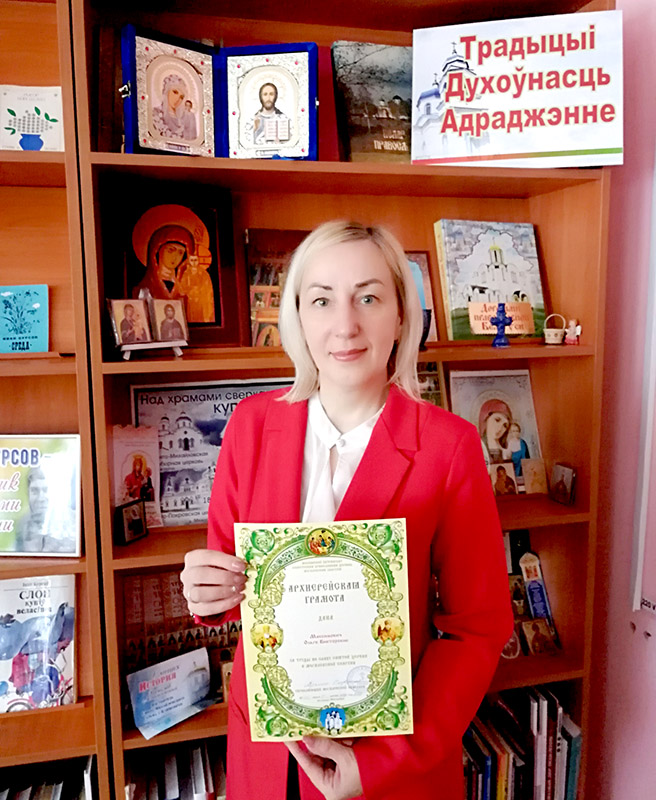 В торжественной обстановке Ольге Максимович вручили Архиерейскую грамоту Архиепископа Могилевского и Мстиславского Софрония «За труды во славу святой церкви в Могилевской епархии».