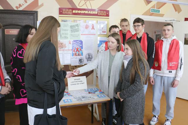 В Климовичском государственном аграрном колледже прошла акция «АнтиСПИД». О проблеме ВИЧ/СПИДа с учащимися беседовали председатель Молодежного парламента при Климовичском районном Совете депутатов Ирина Шашкова, первый секретарь райкома ОО «БРСМ» Алеся Котова, инструктор-валеолог Климовичского райЦГЭ Сергей Терешонок, помощник врача-эпидемиолога Наталья Емельянова.