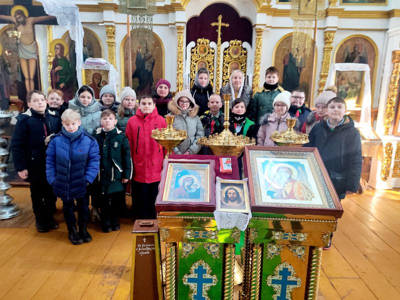 Как рассказала заместитель директора по воспитательной работе учебного заведения Ольга Тимошенко, урок православной культуры «Через книгу к духовности» начался с экскурсии по Свято-Михайловской церкви. В ходе мероприятия ребят познакомили с историей храма, особенностями его внутреннего строения и убранства, рассказали о священнослужителях Климовщины.