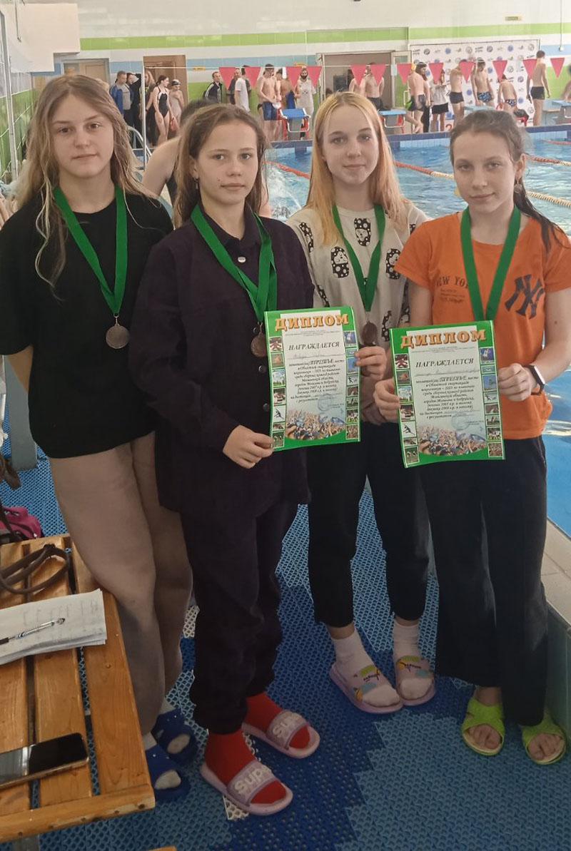 В эстафетах вольным стилем 4×50м и 4×100м девушки были дважды третьими.