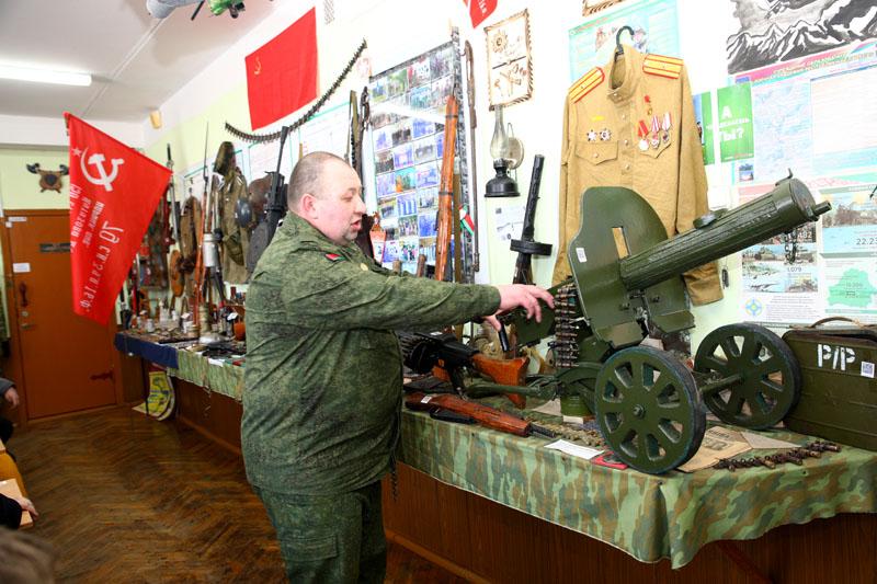 День защитников Отечества и Вооруженных Сил Республики Беларусь стал знаковым для старшеклассников школ Климовичского района. Для парней была организована экскурсия в аграрный колледж. Преподаватель допризывной подготовки Андрей Новиков стал инициатором создания музейного уголка военной доблести и славы, где сегодня размещены различные экспонаты, рассказывающие об исторических вехах в судьбе Беларуси. Многие вещи Андрей Николаевич изготовил собственными руками. Часть реликвий принесли учащиеся. В общем, всем миром собирали интересные артефакты, чтобы можно было не только увидеть, но и потрогать руками исторические предметы.
