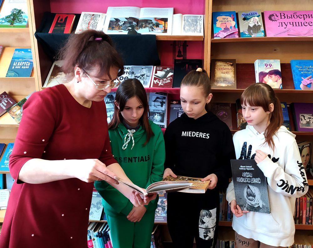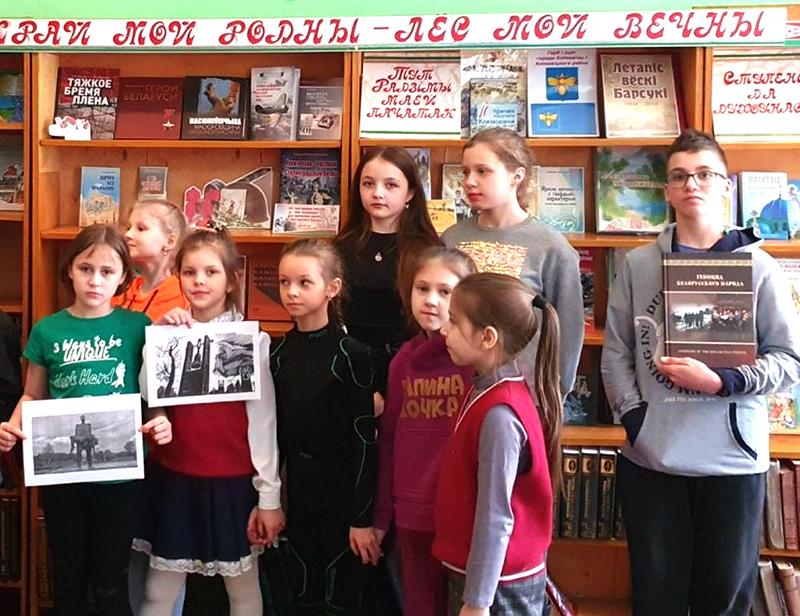 В библиотеке агрогородка Тимоново для учащихся местной школы библиотекари провели видеолекторий «Как хорошо на свете без войны». Дети услышали рассказ о трагической судьбе Хатыни, совершили виртуальное путешествие по Государственному мемориальному архитектурно-скульптурному комплексу «Хатынь».