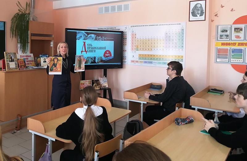 Библиотекари центральной районной библиотеки имени И. Пехтерева для учащихся 7 «Б» класса средней школы № 3 г. Климовичи провели праздник, посвященный Дню православной книги. Ольга Максимович рассказала школьникам об истории возникновения праздника, о первопечатниках Иване Федорове и Петре Мстиславце, об уникальности первой печатной книги «Апостол». Учащиеся узнали о роли православной книги и ее значении в жизни православного человека. Ребята принимали участие в интеллектуальной викторине «Духовное наследие».