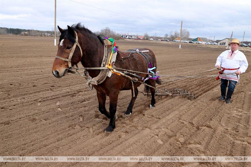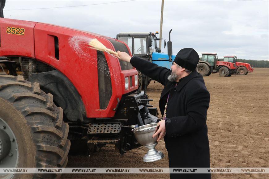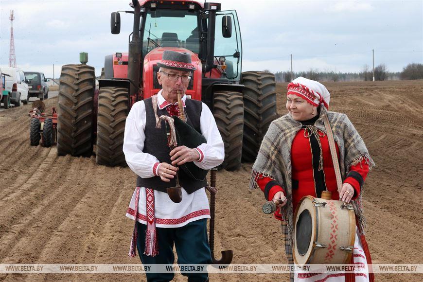 Руководитель ОАО «Осиповичиагропромтехснаб» Федор Воробей отметил, что первыми начинать работы ответственно. Но хозяйство к посевной готово. «Наше сельхозпредприятие — это более 3,7 тыс. га, из них пашни 1,8 тыс. га. Для обработки пашни у нас есть три энергонасыщенных трактора, четыре трактора 1221, для других работ — четыре трактора МТЗ-82. Есть план работы на каждый день: работаем там, где можно войти в поле. Как только оно подсохло, начинаем закрытие влаги, а затем все процессы идут своим чередом, — рассказал он. — Посевную сегодня начали на поле в 64 га. Здесь сеют зернобобовые культуры: овес плюс яровая вика, а через пару дней подсеют многолетние травы для молочно-товарного комплекса, который размещается неподалеку — в нем 470 голов дойного стада. Сегодня старт посевной начинаем с традиционного обряда. Наши деды и прадеды так начинали эту ответственную пору».