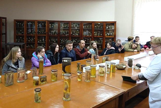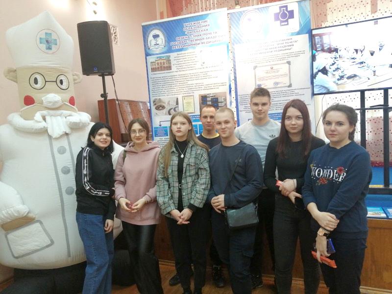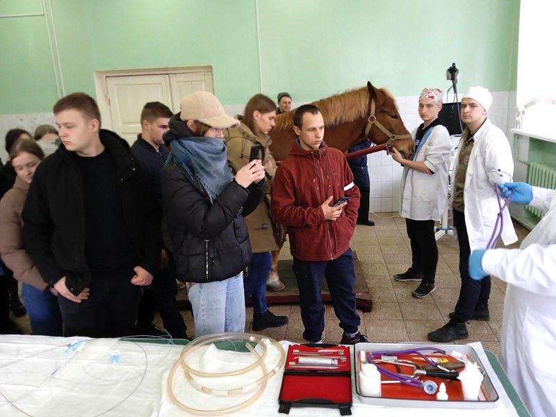 Работники высшего учебного заведения провели для старшеклассников увлекательную и познавательную экскурсию. Ребята побывали в учебно-лабораторном корпусе, а также в музеях академии. Им рассказали, что впервые на территории Беларуси именно в стенах Академии было установлено правило гуманного медицинского отношения к животным.