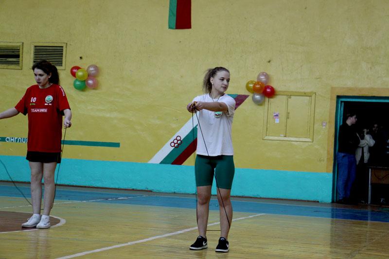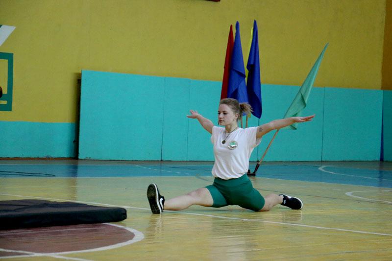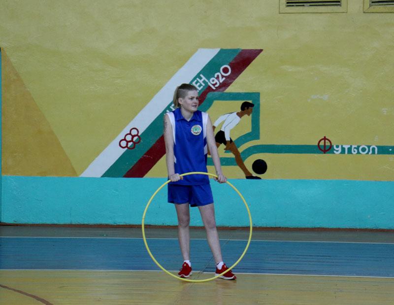 Девушки, учащиеся колледжа, соревновались в различных дисциплинах. При этом они демонстрировали мастерство, гибкость и грацию. Например, запросто становились «на мостик», делали «березку» или садились на шпагат. Выполняя силовые упражнения, отжимались от скамейки, «качали пресс». Они мастерски крутили обруч в движении и прыгали со скакалкой.