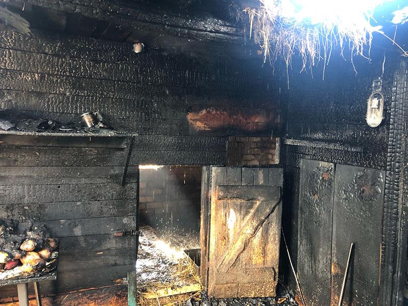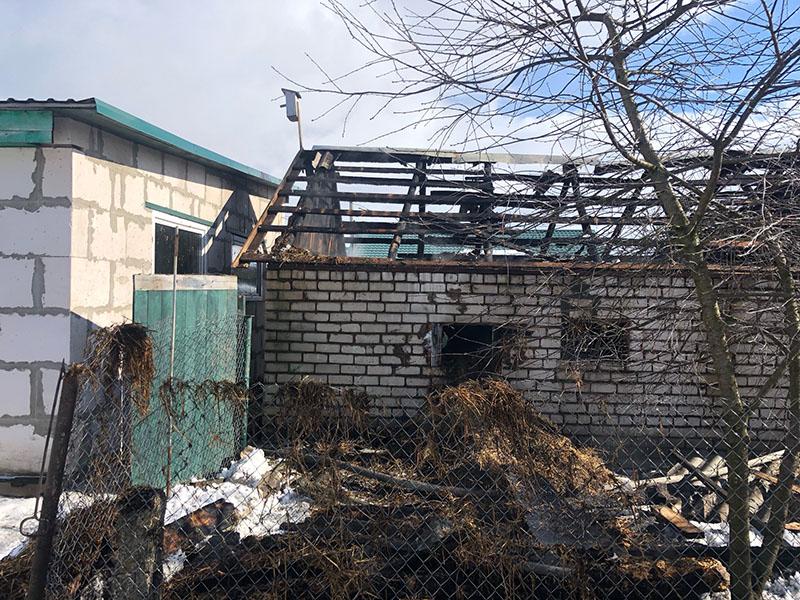В результате пожара повреждена кровля, перекрытие по всей площади и имущество в сарае. Погибли 3 кролика, 30 кур.