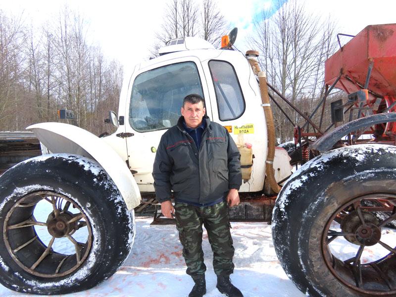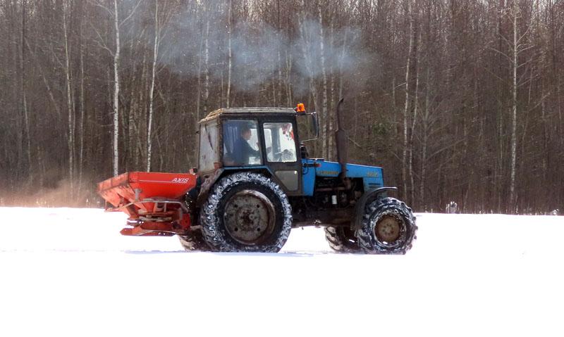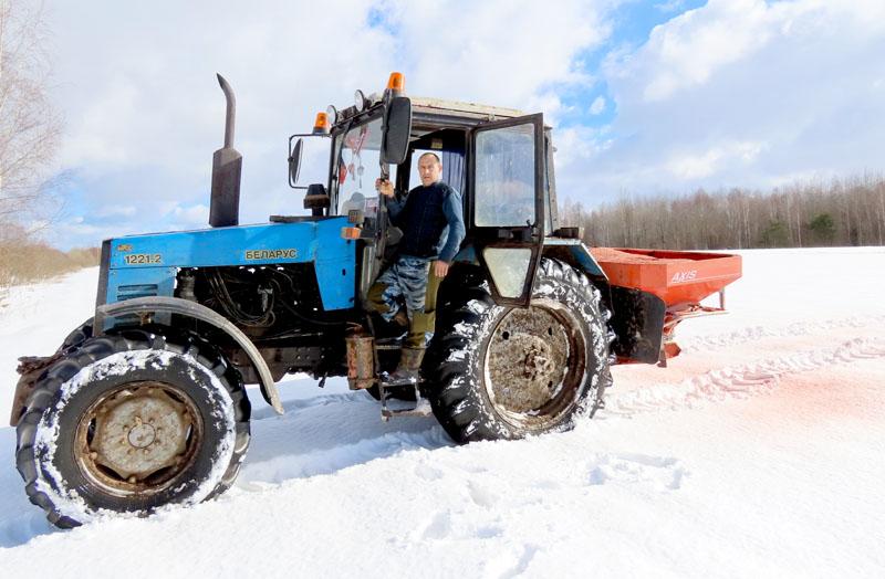 — Уже не первый год на «Росе» работает опытный механизатор Александр Кирпиченко, — рассказывает главный агроном. — Его дневная норма — около 80 гектаров. На тракторах «Беларусь» с разбрасывателями твердых минеральных удобрений задействованы Андрей Кухарев и Александр Кубышко. Подвозит калий Андрей Ярцев.