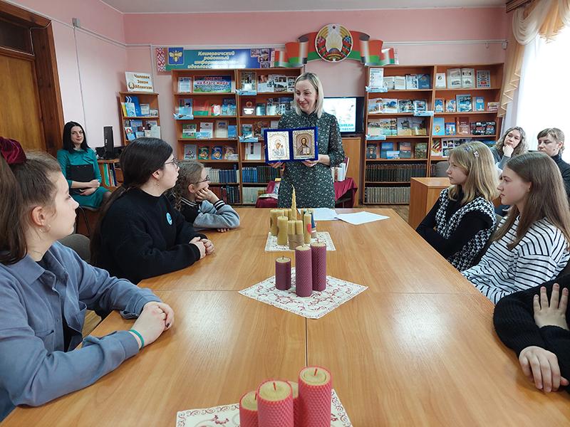На встречу пригласили учащихся 7-х классов средней школы № 3 и их классных руководителей. Ольга Максимович рассказала о православном празднике, его традициях и обычаях, а также о главных символах Пасхи.