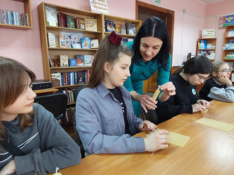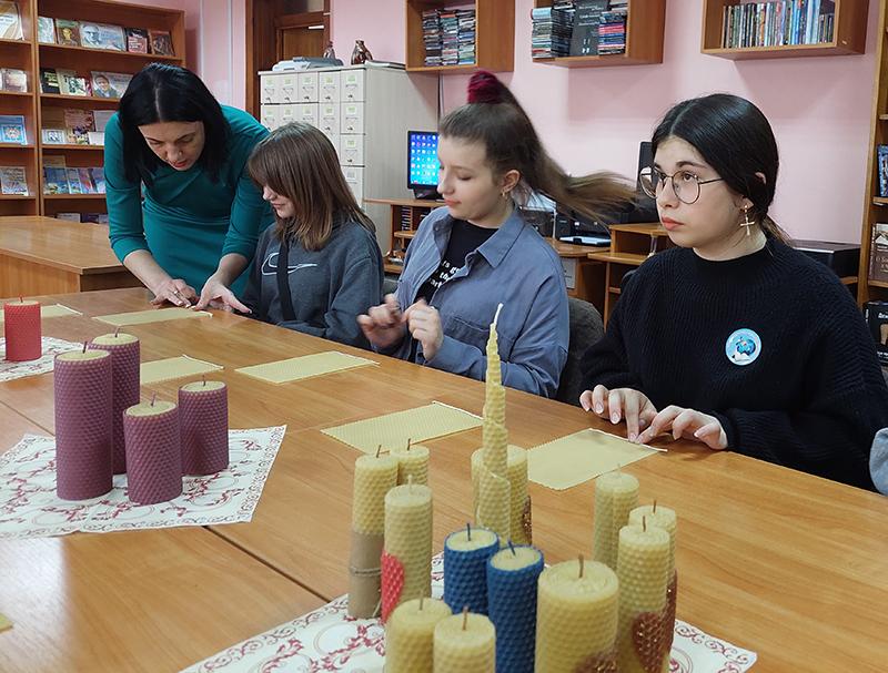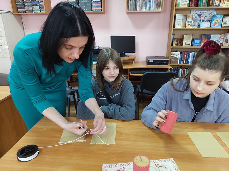 В преддверии православного праздника в библиотеке провели еще и уникальный мастер-класс. Библиотекарь отдела по обслуживанию детского читателя