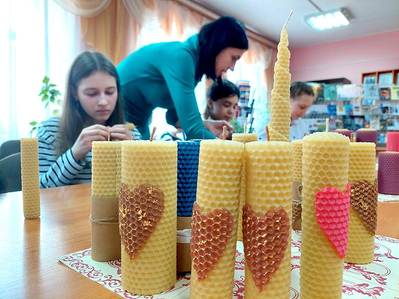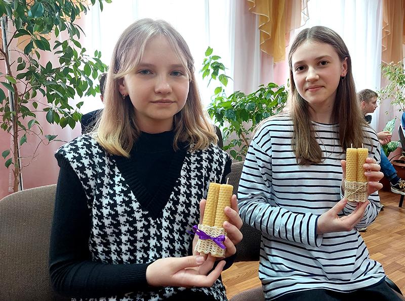 Пчелиный воск — это исключительно натуральный продукт, обладающий приятным легким медовым ароматом. Участники мастер-класса погрузились в завораживающий процесс создания медовых свечей и попробовали сделать их самостоятельно. Ребята украшали свои изделия разноцветными лентами, кружевом. Каждая свеча получилась особенной, экологически чистой и с натуральным ароматом меда. На память о мастер-классе каждый участник забрал с собой ароматные свечи, чтобы зажечь их на Пасху.