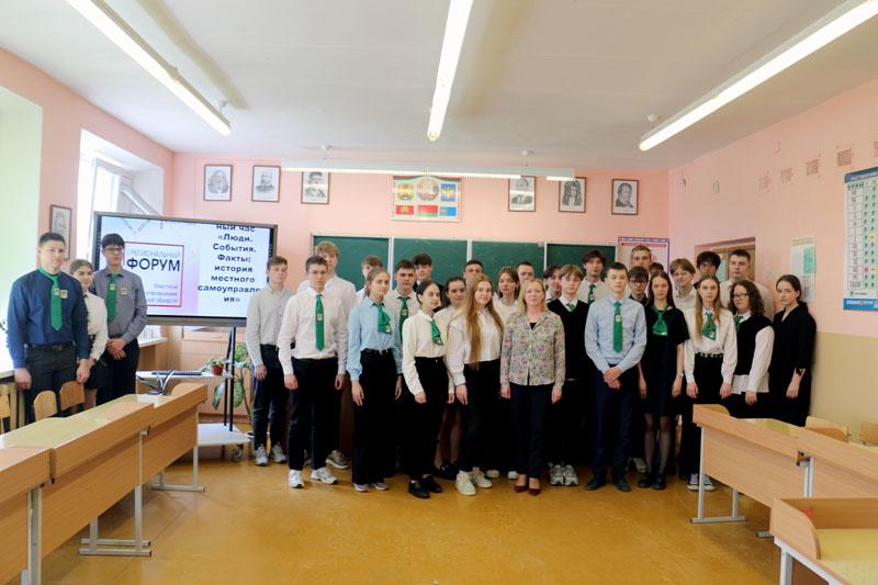 В рамках I регионального форума «Местное самоуправление Могилевской области: «Инициатива. Единство. Действие. Результат» с учащимися 10-11 классов УО «Климовичская районная гимназия имени И.С.Николаева» депутат Климовичского районного Совета депутатов по Южному избирательному округу № 4 Алеся Котова провела информационный час «Люди. События. Факты: история местного самоуправления».
