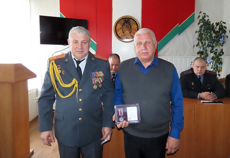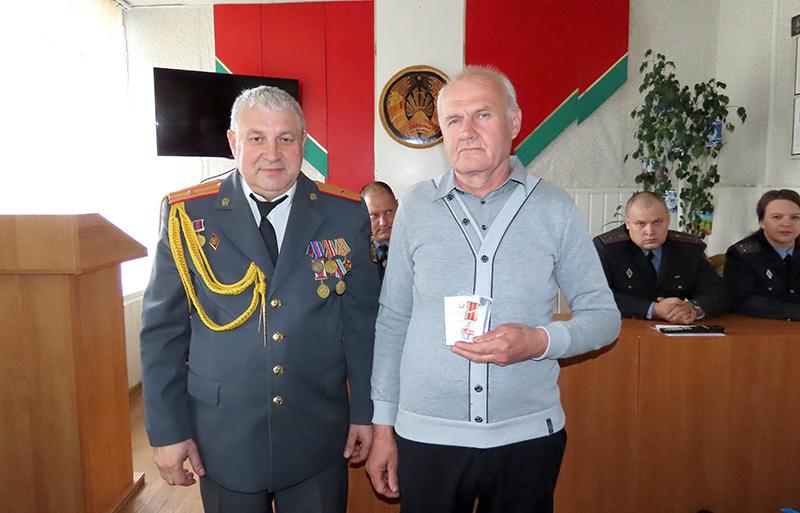 Александр Николаевич провел церемонию награждения. Нагрудный памятный знак «За уклад ва ўмацаванне правапарадку» из рук председателя ветеранской организации получил ветеран МВД Николай Ермоченко, а Николаю Кулакову был вручен нагрудный памятный знак «Участник ликвидации аварии на ЧАЭС».