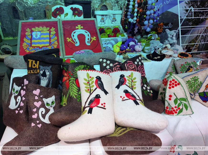 Дрибинский район презентовал традиции шаповальства — валенки, шапки, игрушки, украшения из шерсти. В планах у местных ремесленников — создать коллекцию картин с символикой белорусских городов.